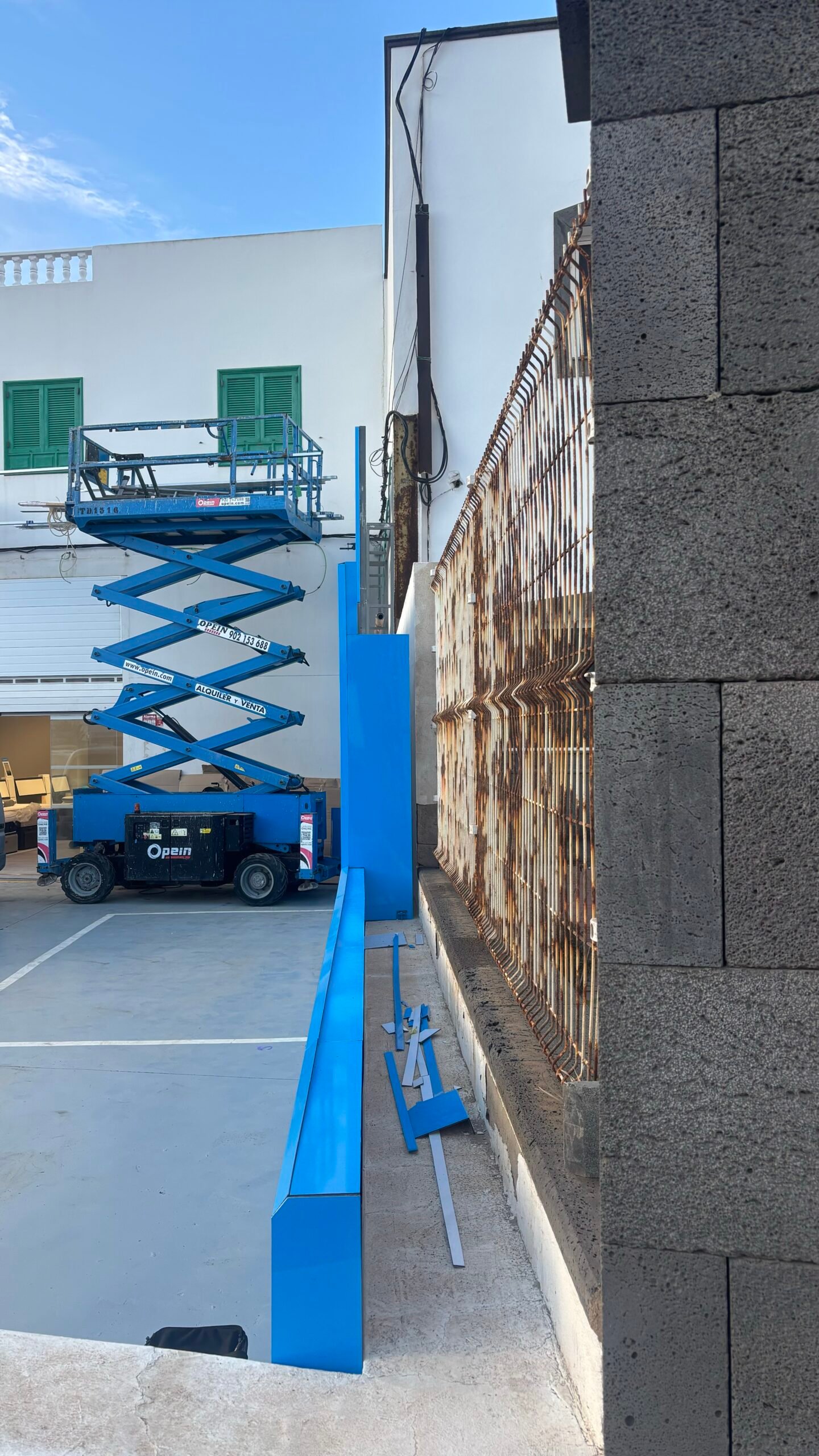 - Una vez llegamos a la isla, procedimos a la instalación de la estructura de hierro de la pared derecha, para posteriormente comenzar el revestimiento.