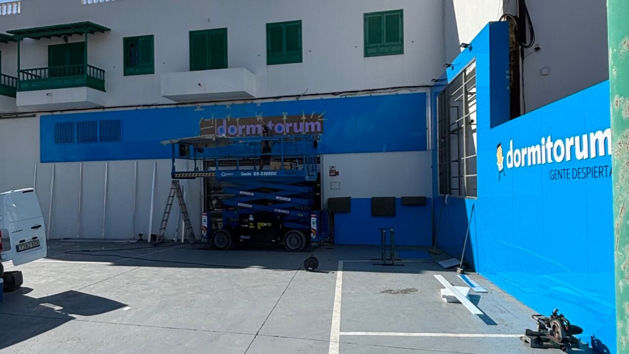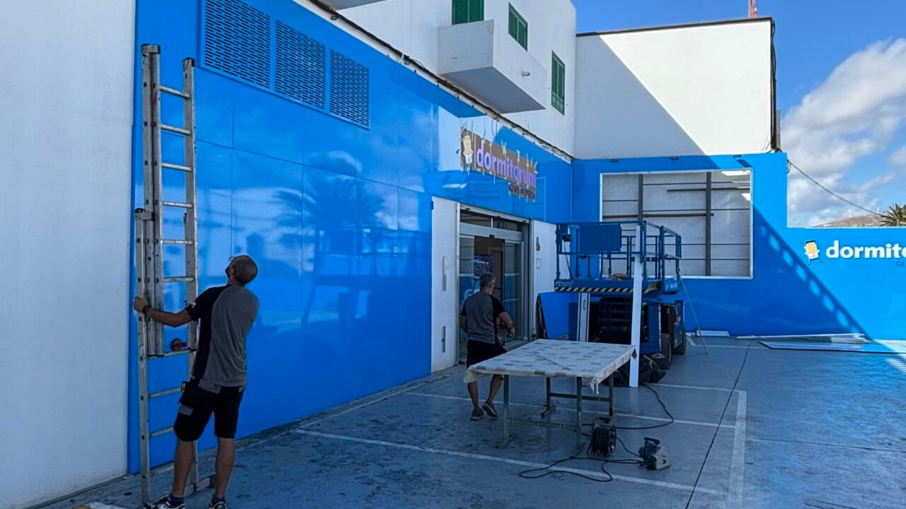 En esta ocasión el equipo de IMC se desplazó hasta Lanzarote para el revestimiento de fachada, instalación de lona, letras corpóreas y logotipos del primer Dormitorum en la isla. Te explicamos como lo hicimos: